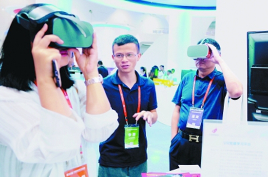 7月5日第二十屆中國海外學(xué)子創(chuàng)業(yè)周上,觀眾體驗VR產(chǎn)品(圖源:新華社)