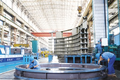 始建于1949年的濟南重工集團有限公司近年來致力打造以軌道交通裝備產(chǎn)業(yè)為核心的智能制造與高端裝備產(chǎn)業(yè)園,老國企煥發(fā)出勃勃生機。圖為2019年5月11日,工人在查看盾構機部件。張進剛攝(人民視覺)