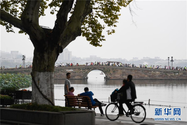 10月7日,游客在杭州西湖風(fēng)景區(qū)休閑游玩。新華社記者 黃宗治 攝