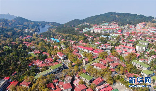 這是10月10日在廬山風景區(qū)內(nèi)拍攝的牯嶺鎮(zhèn)(無人機拍攝)。新華社記者 胡晨歡 攝