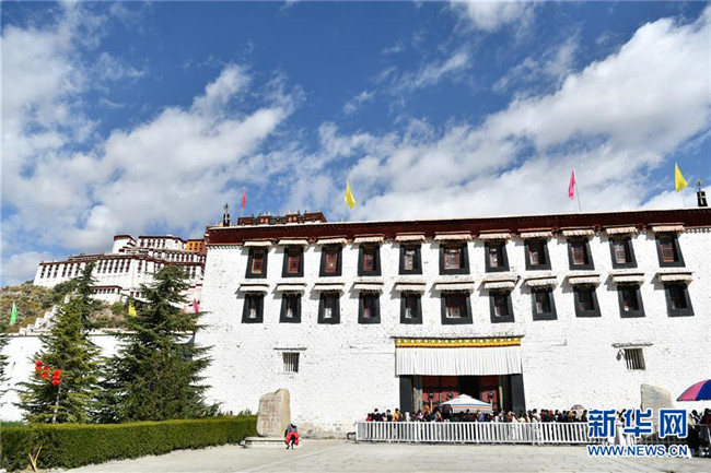 10月15日,游客在布達(dá)拉宮景區(qū)游覽。