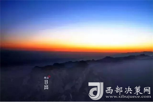 是時(shí),但見夜幕自東方悄然隱退,晨曦初露,漸漸霞光瑰麗,云源奔涌。瞬間,一輪火球噴薄而出,繼而光芒四射,氣象萬千,整個(gè)世界大放光明,游人身心為之一振。待云霧散盡,蒼松翠柏,則更加清麗悅目,美妙神奇。故而,游名山者必登華山,登華山者必觀日。華山日出亦被列為華山自然風(fēng)光中的重要景觀之一。