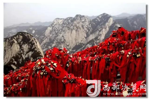 華山是一座愛情的殿堂。發(fā)生在華山上的每一個(gè)愛情故事都讓人感動(dòng)、讓人頂禮膜拜。眾所周知的神話傳說《寶蓮燈》中,三圣母為了愛情,被二郎神用巨石壓在華山峰下;弄玉為了愛情,逃離安逸的生活,與蕭史雙雙來到華山,琴瑟合鳴;漢臣王咸不畏艱險(xiǎn),到華山尋找賢妻南陽(yáng)公主等等這些愛情故事,感天動(dòng)地,流傳不衰。也許是讓華山上這些動(dòng)人的愛情故事所感染,不知從什么時(shí)候開始,游人將自己對(duì)美好愛情的向往,對(duì)理想愛情固若磐石的期望用一把把閃閃的金鎖,堅(jiān)定的鎖在了華山之上,在華山的見證下,在華山神的保佑下,舉案齊眉、白頭偕老。