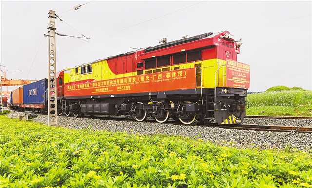 滿載125臺整車的專列從重慶沙坪壩區(qū)團結(jié)村中心站駛出,標(biāo)志著西部陸海新通道整車出口常態(tài)化班列的開啟。(本報資料圖片) 記者 羅斌 攝