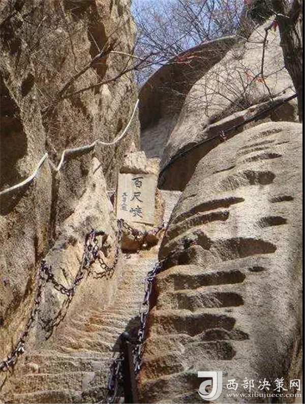 華山著名險(xiǎn)道之一,它莽莽蒼蒼,嶺呈蒼黑色,筆直插天,好似蒼龍騰空,所以被稱(chēng)為“蒼龍嶺”。