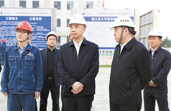 在渭南市LNG(液化天然氣)應急儲配調峰站,劉國中聽取調峰站運轉和儲罐、氣化器等設備管理情況匯報,要求加強全市天然氣使用情況的分析研判,及早部署采暖高峰期用氣保障工作,切實發(fā)揮好調峰保供作用。在華能熱電聯(lián)產(chǎn)項目建設現(xiàn)場,劉國中仔細詢問在建機組發(fā)電功能,以及資源利用、節(jié)能減排、環(huán)保安全等方面情況,要求加快施工進度,力爭在今年采暖季建成投用,更好滿足群眾冬季取暖需求。