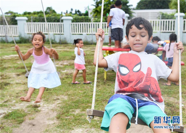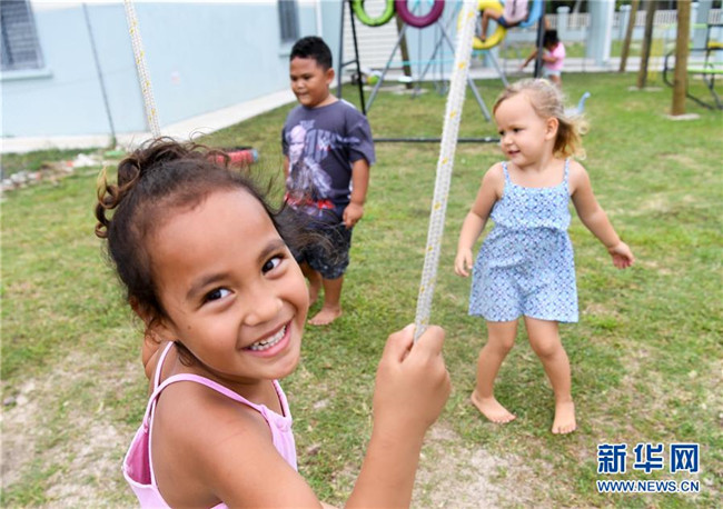 10月26日,在庫克群島首都阿瓦魯阿的阿皮尼考學(xué)校,幼兒園的孩子在操場(chǎng)上玩耍。