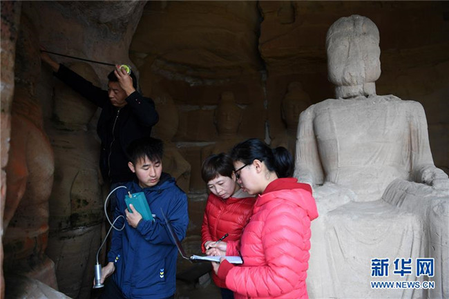 位于甘肅省慶陽市的北石窟寺始建于北魏永平二年(公元509年),經(jīng)歷代不斷擴(kuò)建形成一處窟龕密集的石窟群,現(xiàn)存大小窟龕308個(gè),石窟造像2000多身,在我國佛教石窟藝術(shù)中占有重要地位。近年來,為應(yīng)對(duì)石窟的風(fēng)化、落砂等情況,文物保護(hù)工作人員對(duì)石窟周邊環(huán)境和山體狀況進(jìn)行定期檢測(cè),以制定合適方案對(duì)北石窟寺加以修復(fù)保護(hù)。