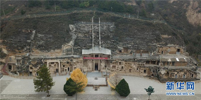 11月5日無人機(jī)拍攝的甘肅省慶陽市北石窟寺。 新華社記者 馬寧 攝