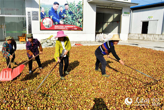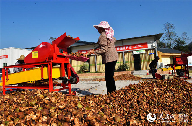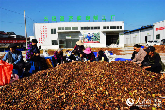 1月3日,在重慶市酉陽土家族苗族自治縣五福鎮(zhèn)的五福盈茶油定制工廠,工人們正忙著晾曬油茶籽,整個廠區(qū)一片繁忙景象。近年來,該縣采取“生態(tài)+產業(yè)”模式在荒山上開發(fā)的上萬畝油茶已陸續(xù)豐收,油茶產業(yè)成為當?shù)剞r民脫貧致富產業(yè)之一。
