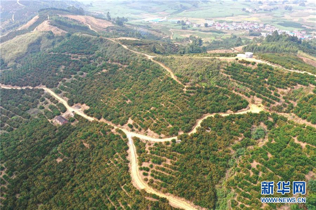 這是鹿寨縣平山鎮(zhèn)大陽村的柑桔種植區(qū)(11月7日無人機(jī)拍攝)。