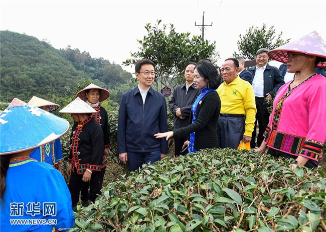 11月9日至11日,中共中央政治局常委、國(guó)務(wù)院副總理韓正在海南調(diào)研。圖為11月10日,韓正在五指山椰仙有機(jī)茶生態(tài)觀光園,了解高山雨林有機(jī)茶種植等特色產(chǎn)業(yè)培育、病蟲(chóng)害物理防治、種植產(chǎn)業(yè)和旅游產(chǎn)業(yè)融合發(fā)展等情況,與正在茶園工作的當(dāng)?shù)剞r(nóng)民和貧困戶(hù)交流。 新華社記者 高潔 攝