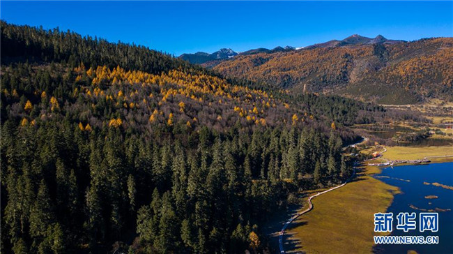 這是無(wú)人機(jī)拍攝的普達(dá)措國(guó)家公園一景(11月6日攝)。