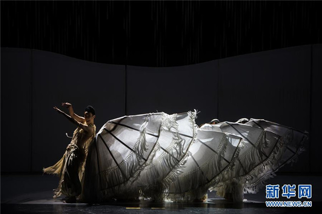 演員在音樂(lè)舞劇《云繡彝裳》第五章節(jié)“絲路云裳”中表演(11月15日攝)。新華社記者胡超攝