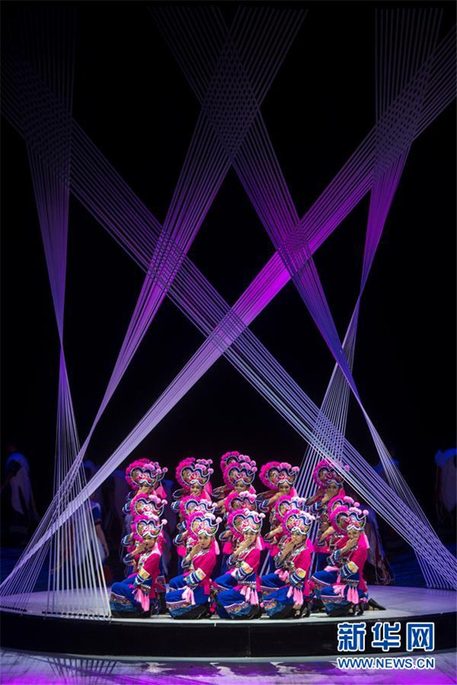 演員在音樂(lè)舞劇《云繡彝裳》第三章節(jié)“彝家有女”中表演(11月15日攝)。新華社記者胡超攝