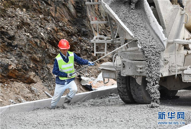 11月19日,在廣西融水苗族自治縣四榮鄉(xiāng),工人在羅融二級公路建設(shè)現(xiàn)場施工。新華社記者 黃孝邦 攝