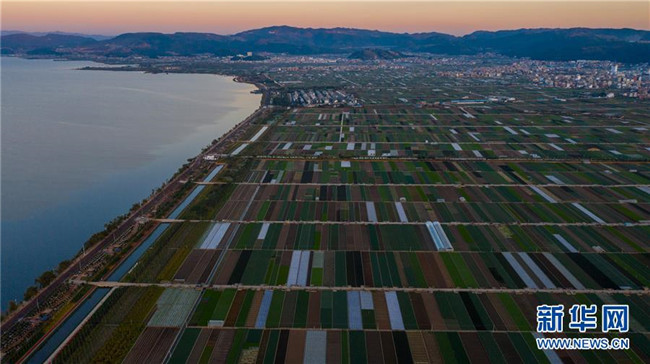 這是云南省玉溪市通??h的田園風(fēng)光(11月23日無(wú)人機(jī)拍攝)。初冬時(shí)節(jié),云南省玉溪市通??h風(fēng)景秀麗,山巒、湖水與農(nóng)田組成了一幅美麗的田園詩(shī)畫(huà)卷。新華社記者胡超攝
