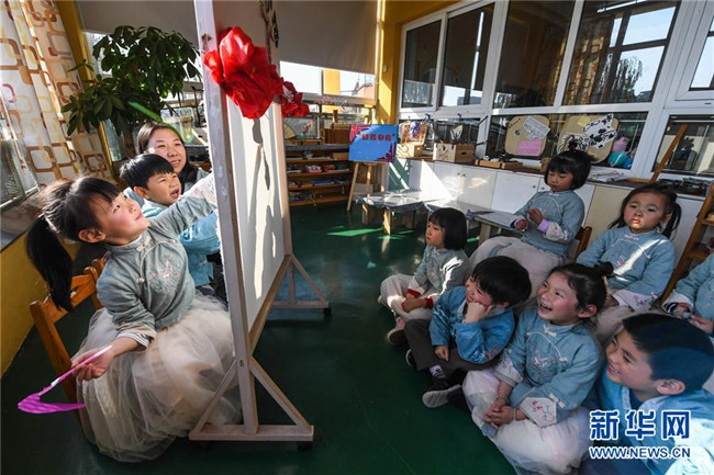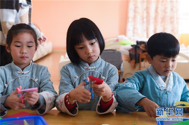 從2019年初開始,浙江省湖州市南太湖幼兒園開啟“國學(xué)課堂”,通過設(shè)立傳統(tǒng)禮儀、書法、剪紙、京劇、皮影戲等國學(xué)傳統(tǒng)文化課程,致力于將國學(xué)經(jīng)典教育滲透到幼兒日常生活學(xué)習(xí)中,培養(yǎng)幼兒的古典文化底蘊(yùn),教育幼兒從小培養(yǎng)良好的禮儀行為,讓幼兒們?cè)趥鹘y(tǒng)國學(xué)文化的滋養(yǎng)中成長。 新華社記者 徐昱 攝