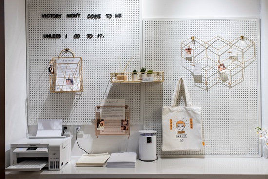 11月24日,北京定福莊一家自習(xí)室一角。這里為顧客提供打印服務(wù)和免費的紙張,一旁展示的是店家設(shè)計的帆布包。