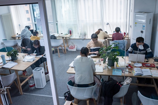 11月22日,袁翊宸在北京中關(guān)村的一家付費自習(xí)室中學(xué)習(xí)。從5月開始,他每天乘坐40分鐘的公交車來到這家自習(xí)室,備考北大金融專業(yè)的研究生。