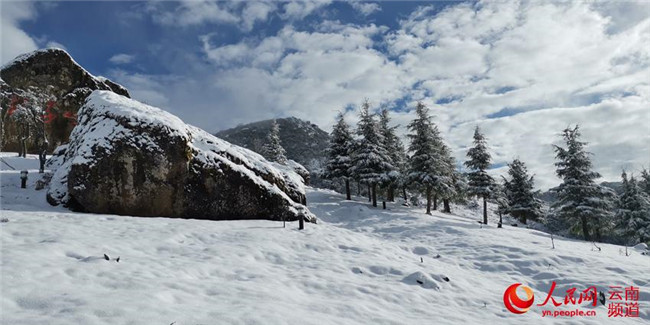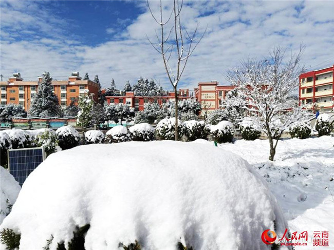 紅河州彌勒市東山鎮(zhèn)一片銀裝素裹。攝影:吳正飛