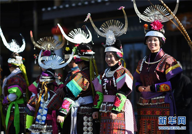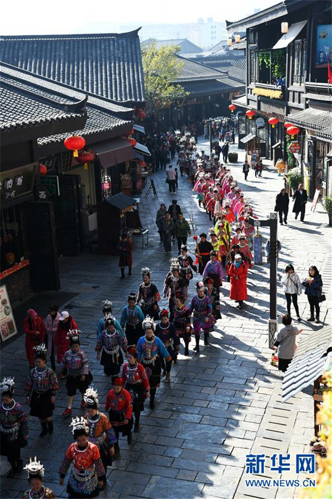 12月7日,苗族群眾在參加“祭尤節(jié)”盛裝巡游。新華社記者 楊文斌 攝