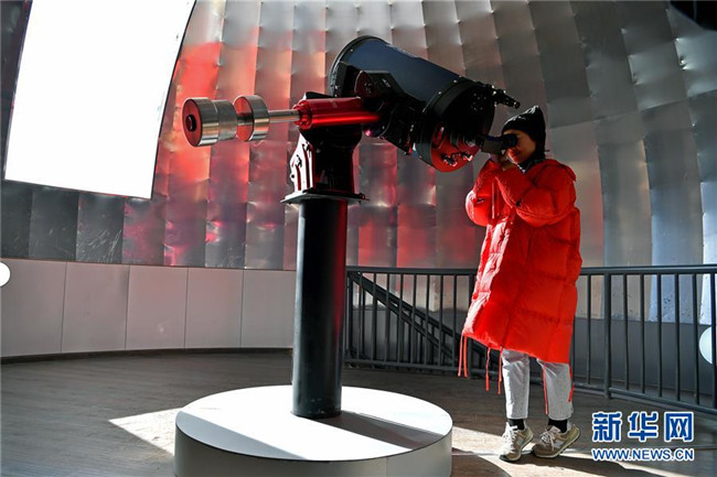 12月14日,參觀者在藏域星球天文科普體驗(yàn)館體驗(yàn)天文望遠(yuǎn)鏡觀測(cè)。當(dāng)日,藏域星球天文科普體驗(yàn)館在西藏拉薩開(kāi)館試運(yùn)營(yíng),這是西藏第一家天文科普體驗(yàn)館。據(jù)介紹,此館以感知宇宙、認(rèn)知宇宙、探索宇宙為主題,以參觀者的第一感官體驗(yàn)為設(shè)計(jì)導(dǎo)向,利用互動(dòng)投影、懸浮投影、物體跟蹤、人體捕捉、體感互動(dòng)、VR等高科技手段展示藏地的神秘,揭示宇宙的奧秘。新華社記者李鑫攝