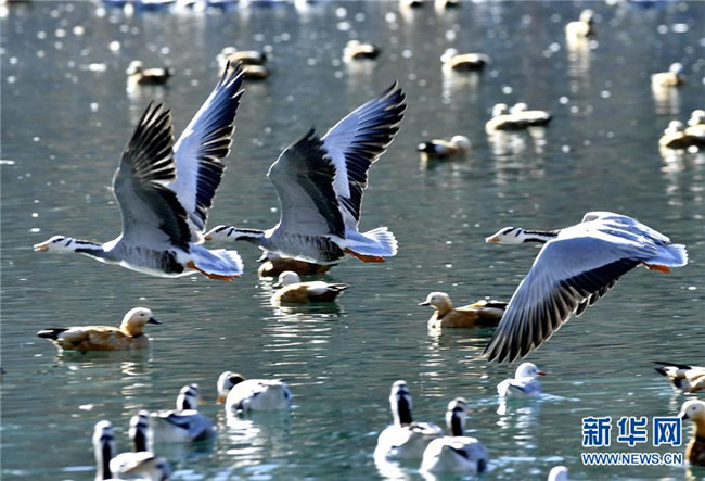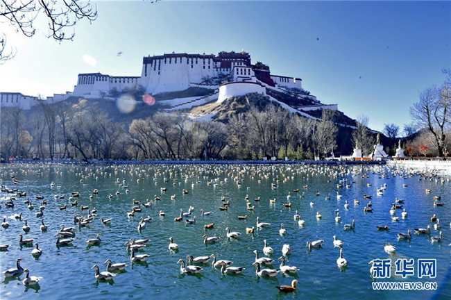 冬日,西藏拉薩市布達拉宮腳下的龍王潭公園成了鳥的“天堂”。數(shù)不盡的斑頭雁、赤麻鴨、紅嘴鷗在這里嬉戲、覓食。