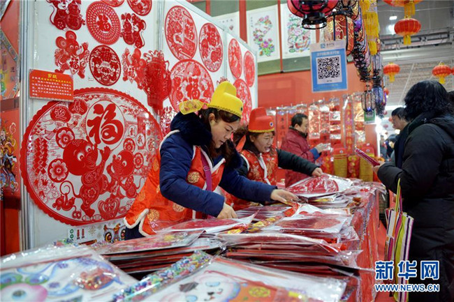 1月8日,商販在內蒙古國際會展中心售賣窗花等年貨。新華社記者 王靖 攝
