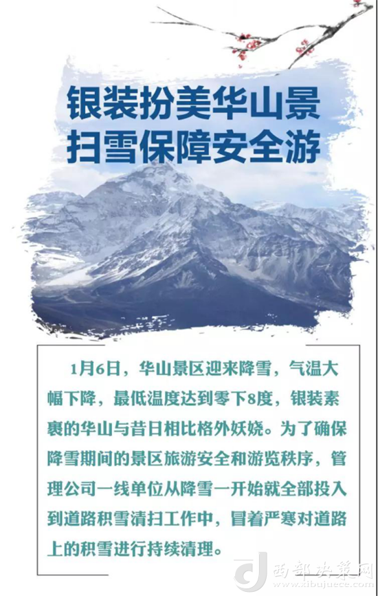 清晨天亮后,工作人員以常態(tài)化的工作要求持續(xù)對(duì)道路積雪進(jìn)行細(xì)化清掃,防止路面結(jié)冰,發(fā)生安全事故。(供稿:華山景區(qū)管理公司)