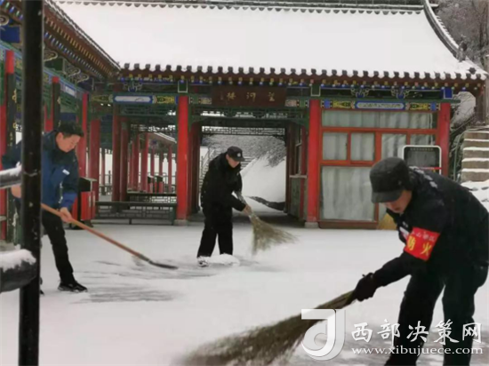 連續(xù)的降雪使景區(qū)內(nèi)積雪最深達(dá)10公分,在欣賞到美景的同時(shí),為確保降雪期間景區(qū)游覽安全和旅游秩序,管理公司一線全體員工從降雪開始一直到7日,冒著嚴(yán)寒對(duì)景區(qū)山上主要道路積雪進(jìn)行清掃,確保及時(shí)恢復(fù)道路暢通,為游客安全游覽做好保障。