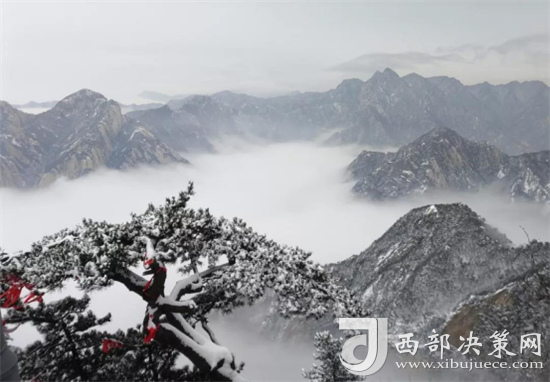 白雪與蒼翠的華山奇松、靈動(dòng)的云海交相輝映,