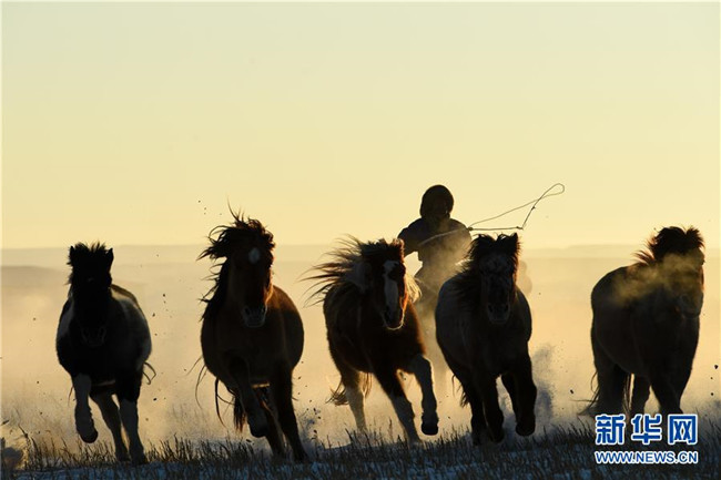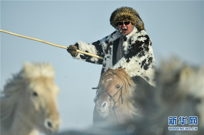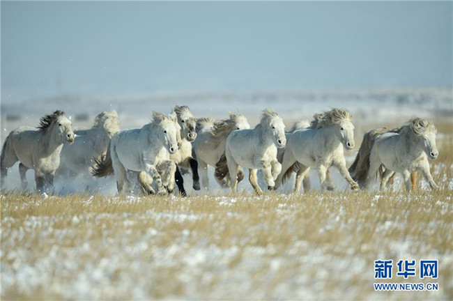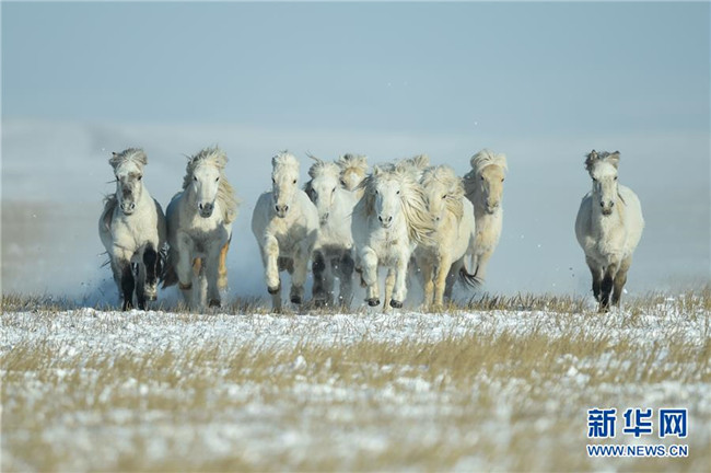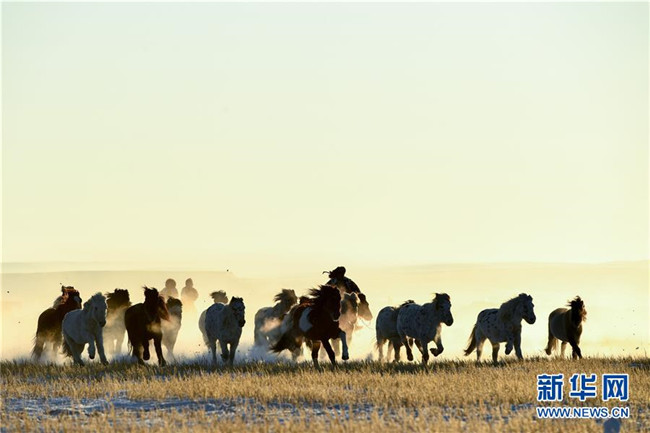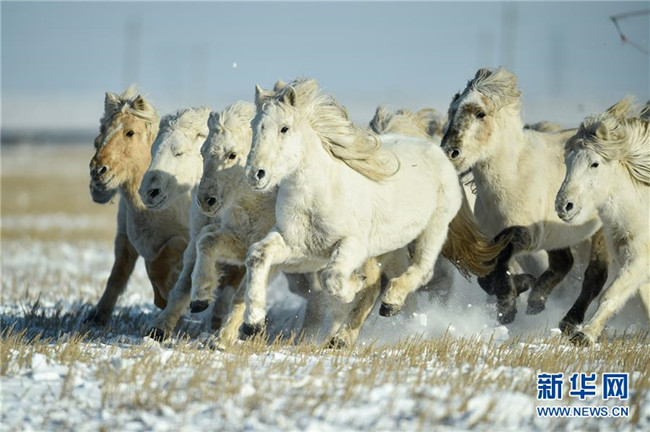 當(dāng)日,內(nèi)蒙古自治區(qū)錫林浩特市鳳凰馬場進(jìn)行了一場馴馬活動(dòng)。騎手們趕著馬群,在白茫茫的草原上奔跑,景象壯觀,吸引了不少游客和攝影愛好者前來觀賞。 新華社記者 劉磊 攝