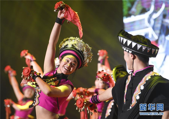 1月12日,演員在慰問演出上表演苗族舞蹈。新華社記者 王全超 攝