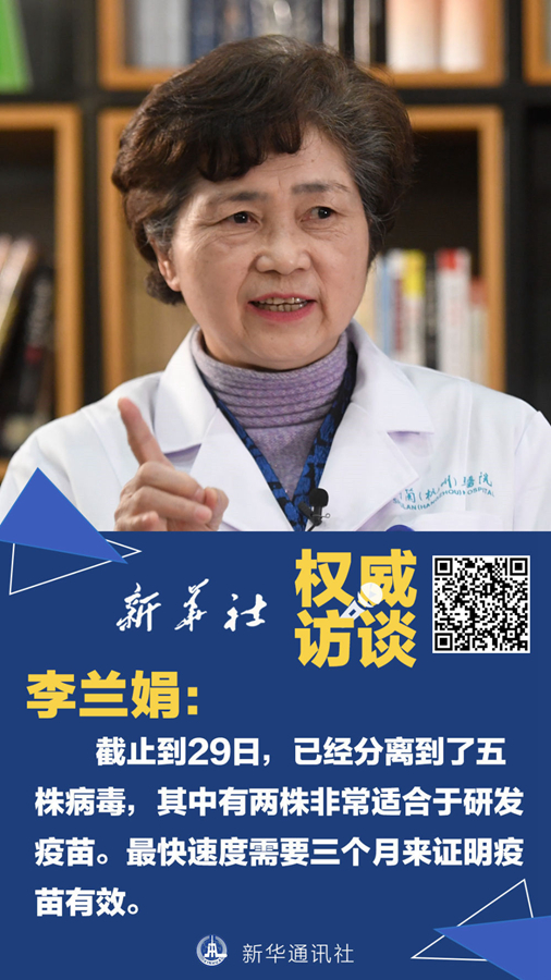 李蘭娟:研發(fā)疫苗第一步是要獲得病毒株。目前,我們已經(jīng)分離到了五株病毒,其中有兩株非常適合于研發(fā)疫苗。分離到種子株之后,還要把種子株的病毒在細胞中培養(yǎng),讓它長到一定的量,這就需要一個多月。大量的細胞病毒拿到了,還要進行滅活,并對它的免疫原性如何,能不能預防、有沒有效果、有沒有毒力、會不會造成新的感染等開展實驗。