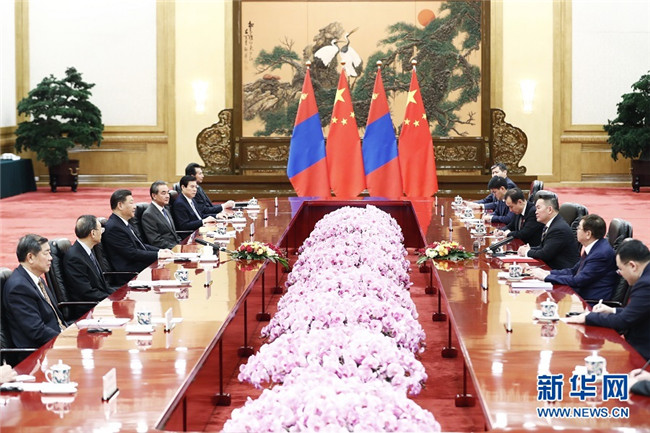 習(xí)近平指出,中蒙是山水相連的友好鄰邦。中方高度重視發(fā)展中蒙關(guān)系,始終將蒙古國作為中國周邊外交的重要方向。中方愿同蒙方一道,鞏固政治互信,加強(qiáng)共建“一帶一路”合作,共同推動構(gòu)建命運(yùn)共同體,更好造福兩國人民,為地區(qū)和平穩(wěn)定發(fā)展作出貢獻(xiàn)。