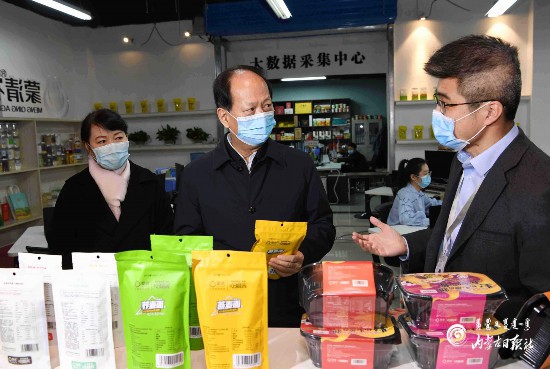 中小微企業(yè)和餐飲業(yè)受疫情影響較大,石泰峰高度關(guān)注。在金橋電子商務(wù)產(chǎn)業(yè)園,他通過觀看大數(shù)據(jù)監(jiān)測平臺、走訪商戶等方式,深入了解入駐企業(yè)經(jīng)營情況。在蒙清農(nóng)業(yè)電子商務(wù)運(yùn)營中心,企業(yè)負(fù)責(zé)人展示了他們研發(fā)的適合“宅”在家食用的“蕎面自嗨鍋”,該產(chǎn)品在疫情期間投入市場后十分暢銷。石泰峰指出,疫情給很多行業(yè)帶來了沖擊和影響,但危中也有機(jī)。要主動應(yīng)變求變,加大產(chǎn)品創(chuàng)新力度,挖掘新的消費(fèi)熱點(diǎn),培育新的消費(fèi)模式,堅持線上線下雙輪發(fā)力,加快釋放新興消費(fèi)潛力。在西貝莜面村,石泰峰走進(jìn)餐廳,詳細(xì)了解防疫防控和堂食營業(yè)、訂單外賣等情況。餐飲企業(yè)對顧客用餐實(shí)行掃碼、測溫、登記,顧客就餐保持規(guī)定距離、實(shí)行分餐,石泰峰要求把這些嚴(yán)格的防控措施切實(shí)落實(shí)到位。他強(qiáng)調(diào),有關(guān)部門要加強(qiáng)服務(wù)指導(dǎo),推動符合條件的餐飲企業(yè)和店鋪積極有序復(fù)工,確保各個環(huán)節(jié)都安全可控。他還隨機(jī)走進(jìn)多家臨街餐館,檢查防疫措施,詢問員工返崗和營業(yè)情況。