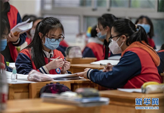 3月23日,昆明市第一中學(xué)高三年級學(xué)生在教室里準(zhǔn)備上課。新華社記者 江文耀 攝