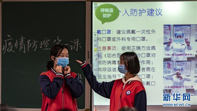 3月23日,昆明市第一中學(xué)高三年級學(xué)生在教室里上疫情防控第一課。新華社記者 江文耀 攝