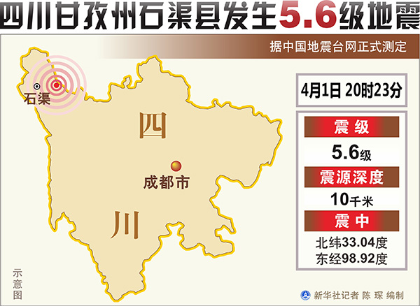 據(jù)中國地震臺(tái)網(wǎng)正式測(cè)定,1日20時(shí)23分在四川甘孜州石渠縣發(fā)生5.6級(jí)地震,震源深度10千米。