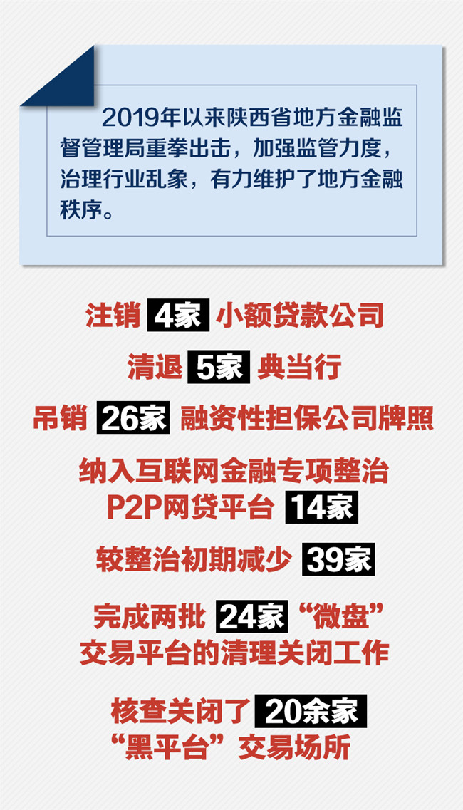 陜西省地方金融監(jiān)督管理局緊密圍繞“一年打擊遏制、兩年深挖根治、三年長效長治”的要求,牽頭12家單位共同成立了全省地方金融領(lǐng)域掃黑除惡專項斗爭工作領(lǐng)導(dǎo)小組,全面負(fù)責(zé)推進(jìn)省地方金融領(lǐng)域掃黑除惡專項斗爭工作。