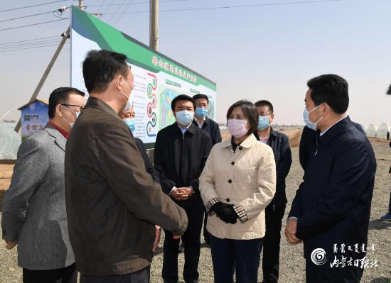 在五原縣塔爾湖現(xiàn)代農(nóng)業(yè)產(chǎn)業(yè)園,布小林詳細了解集現(xiàn)代農(nóng)業(yè)、脫貧攻堅、鄉(xiāng)村旅游、科普教育、河套美食于一體的現(xiàn)代農(nóng)業(yè)發(fā)展模式,察看農(nóng)村人居環(huán)境整治情況。在隆興昌鎮(zhèn)2萬畝高標(biāo)準(zhǔn)農(nóng)田建設(shè)及鹽堿地改良示范項目現(xiàn)場,布小林與當(dāng)?shù)剞r(nóng)技部門、高校科研機構(gòu)工作人員親切交流,深入了解項目進展情況。她還來到中國首家向日葵系統(tǒng)化技術(shù)研究機構(gòu)——三瑞農(nóng)科公司向日葵研究院,走進種質(zhì)資源庫和智能溫室,考察研發(fā)育種、向日葵品種優(yōu)化等情況。她指出,高標(biāo)準(zhǔn)農(nóng)田建設(shè)是保障國家糧食安全的關(guān)鍵舉措,要緊緊圍繞實施鄉(xiāng)村振興戰(zhàn)略,推動藏糧于地、藏糧于技,提高水土資源利用效率,切實增強農(nóng)田防災(zāi)抗災(zāi)減災(zāi)能力,為保障國家糧食安全提供堅實基礎(chǔ)。要不誤農(nóng)時抓好春季農(nóng)牧業(yè)生產(chǎn),堅持質(zhì)量興農(nóng)興牧、綠色興農(nóng)興牧和效益優(yōu)先,推動農(nóng)牧業(yè)高質(zhì)量發(fā)展。