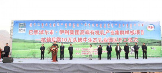 4月18日,巴彥淖爾市伊利集團(tuán)高端有機(jī)乳產(chǎn)業(yè)集群樣板項目——杭錦后旗10萬頭奶牛生態(tài)乳業(yè)園區(qū)開工。自治區(qū)黨委副書記、自治區(qū)主席布小林,自治區(qū)副主席艾麗華出席開工儀式。高曉龍攝