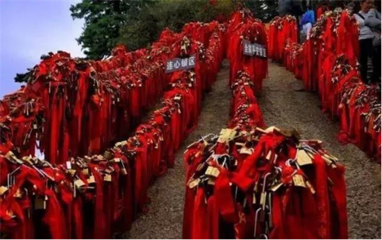 華山是愛情山。“洞房”一詞就源于華山西峰。相傳春秋時(shí)期在華山修行的吹簫人簫史和秦穆公的女兒弄玉就是在華山西峰相識(shí)相愛,由于山上沒有房屋,就在崖壁上鑿洞成婚,“洞房”一詞由此誕生。 如今來愛情山的游客都有了一個(gè)約定俗成的習(xí)慣,“進(jìn)山先拜廟,相愛神知道”。一把連心鎖,鎖定你和我”。相愛的情侶,不分年齡,不分國籍,不分信仰,來到山上都要進(jìn)香上鎖,讓華山見證彼此的真心與愛意,祈求幸福美滿,人生甜蜜。