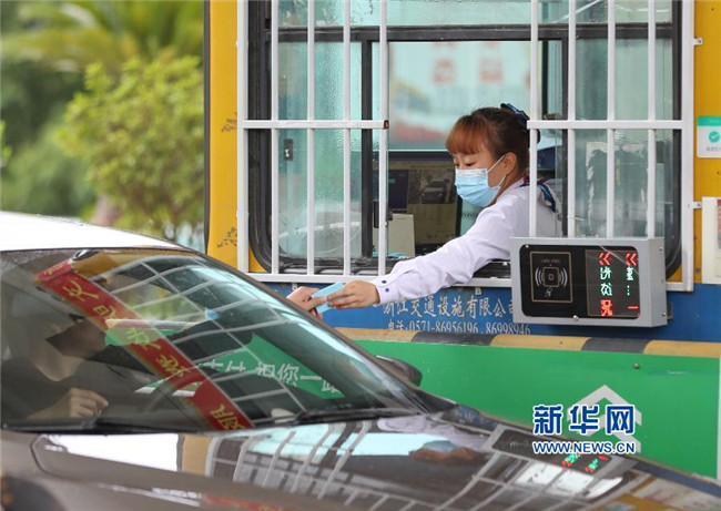 5月6日,貴州省銅仁市玉屏侗族自治縣滬昆高速玉屏收費(fèi)站的收費(fèi)員在收取過(guò)往車輛過(guò)路費(fèi)。 交通運(yùn)輸部4月28日發(fā)布關(guān)于恢復(fù)收費(fèi)公路收費(fèi)的公告,經(jīng)國(guó)務(wù)院同意,自2020年5月6日零時(shí)起,經(jīng)依法批準(zhǔn)的收費(fèi)公路恢復(fù)收費(fèi)(含收費(fèi)橋梁和隧道)。 新華社發(fā)(胡攀學(xué) 攝)
