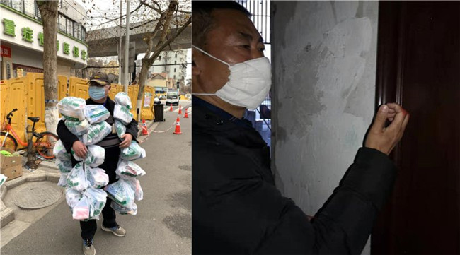 湖北武漢街頭邊,某社區(qū)網(wǎng)格員、被網(wǎng)友們親切稱為“藥袋哥”的豐楓把幾十個(gè)藥袋子串在一起掛在身上,照片被他人隨手拍下,感動(dòng)無(wú)數(shù)網(wǎng)友。那天,他早上5點(diǎn)多就守在了藥房門口,12個(gè)小時(shí)后終于拿齊了近100份藥。四川攀枝花的巷弄里,57歲的李松江每天走訪200多戶,其中多是老年住戶。“要有耐心,敲門的力氣要大一點(diǎn),這樣老人才聽得見。”每天敲門上千次后,他的指關(guān)節(jié)紅腫破皮……
