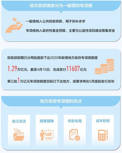 今年以來,專項(xiàng)債發(fā)行快馬加鞭。財政部前期已分兩批提前下達(dá)2020年新增地方政府專項(xiàng)債額度1.29萬億元,截至4月15日,完成發(fā)行11607億元。第三批1萬億元專項(xiàng)債額度目前已下達(dá)地方,按要求將在5月底前發(fā)行完畢。作為財政政策的重要工具,專項(xiàng)債有哪些特點(diǎn)?下一步重點(diǎn)投向哪里?使用這一工具應(yīng)注意些什么?記者進(jìn)行了采訪。