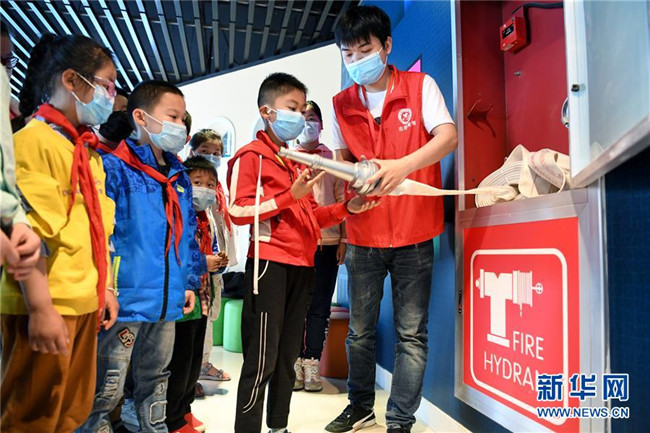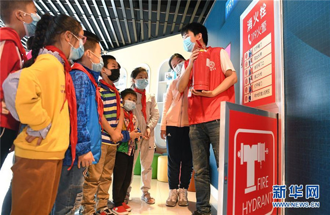 5月10日,合肥市淝南社區(qū)的志愿者向轄區(qū)兒童講解滅火設(shè)備的使用方法。新華社記者 劉軍喜 攝