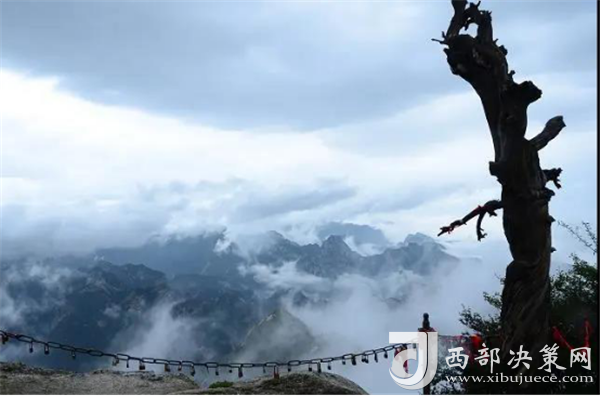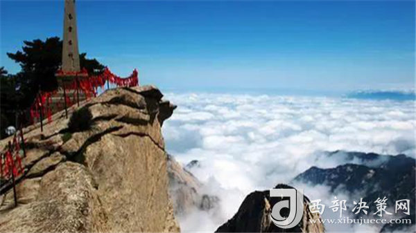 南峰落雁峰 為華山之巔,天近咫尺,星斗可摘。舉目環(huán)視,但見(jiàn)云海如帛如綿,盡收眼底。