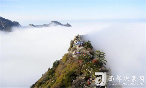 北峰云臺(tái)峰 上冠景云,下通地脈,巍然獨(dú)秀,云圍霧繞,高低沉浮。
